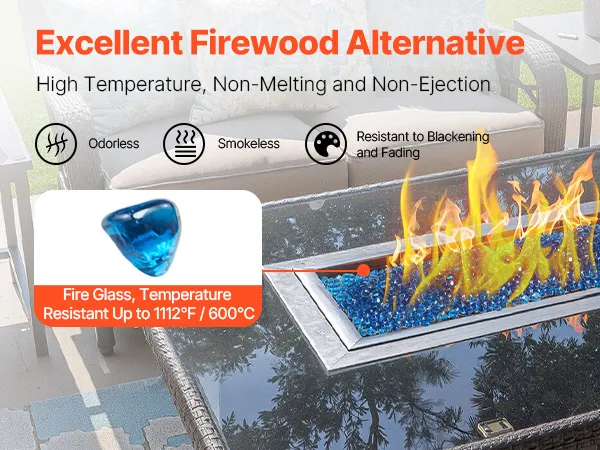 Made from premium fire glass, our bright, colorful decorative pieces are durable and can handle heat. They won't melt, crack, or produce smoke or ash. Just a quick wipe brings back their shine. Ideal for fire pits, fireplaces, and gardens, they effortlessly add a touch of sparkle to your home.