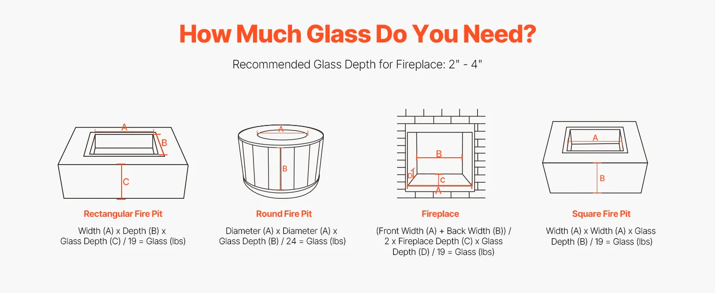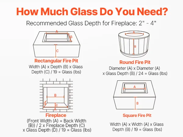 Usage Tip: It’s recommended to fill your fireplace with fire pit glass rocks to a depth of 2-4 inches. This thoughtful design brings out the flawless blend of looks and practicality, helping you create a one-of-a-kind fireplace display
