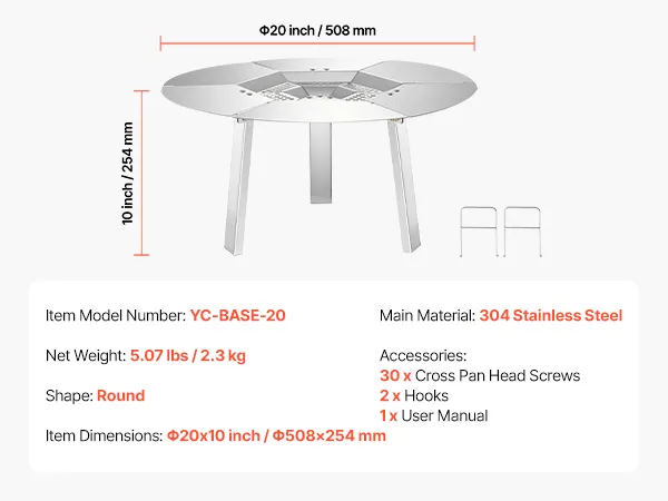 VEVOR Fire Pit Heat Deflector for Solo Stove, 508 mm Round for Wood Burning Fire Pit, 304 Stainless Steel Heat Diffuser, Detachable Burner Cover Camping Accessories