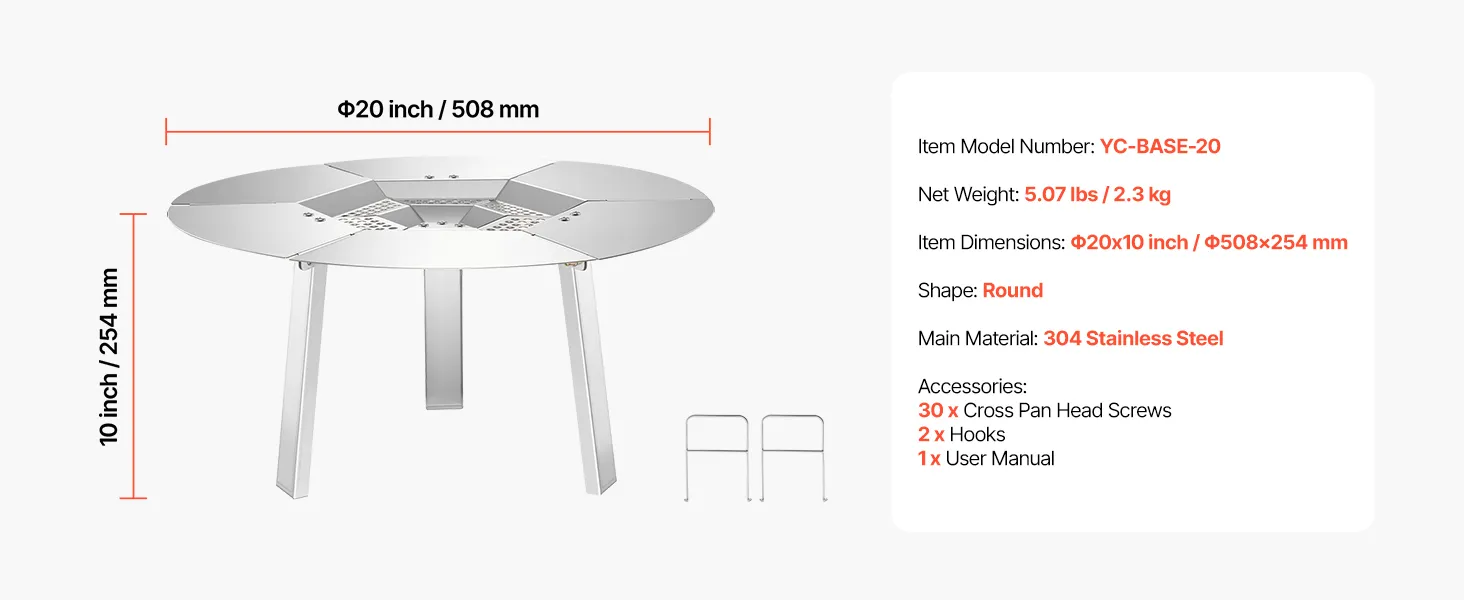 304 Stainless Steel Material: Made of rust-resistant 304 stainless steel, this heat deflector for Solo Stove Ranger is sturdy, heat-resistant, and corrosion-proof. Smooth edges enhance security, and it remains stable in both fixed fire pits and outdoor camping