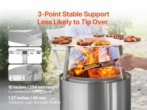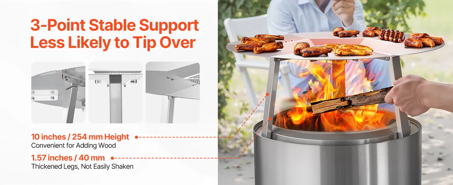 Sturdy Support Design: The 3-point leg support system ensures stability for various fire pit sizes, avoiding tipping and accidental drops. Ideal for both fixed backyard fire pits and portable camping stoves, providing more secure use