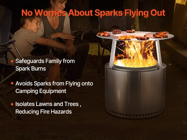 The fire pit heat shield features a stainless steel top, heat-resistant and spark-proof. It holds grill nets or foil trays for roasting marshmallows, sweet potatoes, or small meats. Even heat distribution and sturdy legs ensure reliable use for outdoor cooking fun.