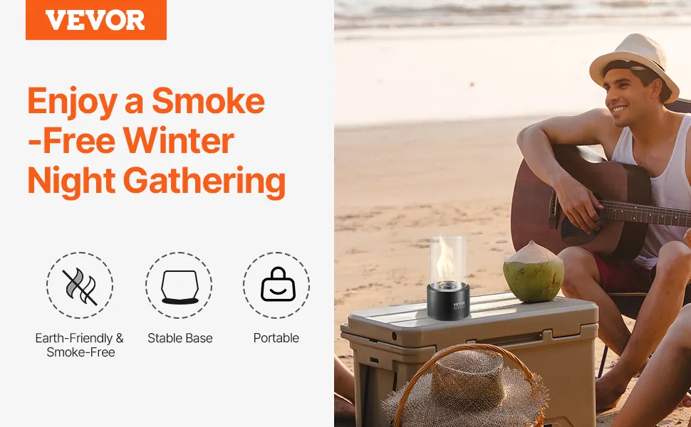 This tabletop fire pit features a smokeless, green design, requiring only bio-ethanol or isopropyl fuel for use. Clean and safe, it protects the environment while providing a pure, warm experience for your gatherings. Enjoy a cozy, smoke-free ambiance effortlessly.