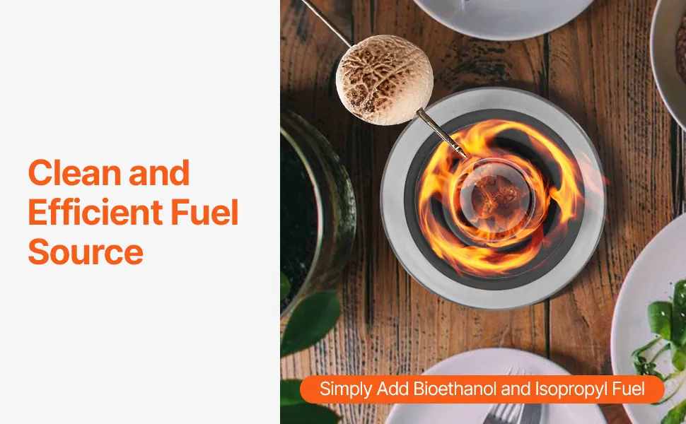The Perfect Smokeless Burning: The ethanol fire pit uses bioethanol or isopropyl alcohol fuel, burning cleanly without ash, soot, or smoke emissions, ensuring the air remains pure and green indoors and outdoors.