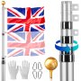 VEVOR 20FT Telescopic Flagpole Kit, Heavy Duty Aluminum Alloy Flag Pole Kit in Ground for Outside, 3 Display Modes Flagpole with Professional Accessories, British Flag, Silver