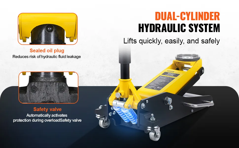 If you need to use the low profile floor jack frequently, the dual-cylinder system allows for faster lifting of heavy objects. The design is more stable with built-in safety features and a sealed hydraulic cylinder, minimizing the risk of tilting or instability during lifting.