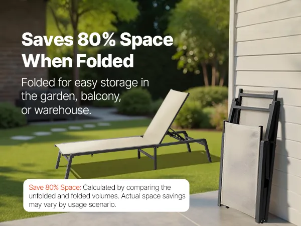 Quick Folding: Press to release the security lock and fold the patio chaise lounge chair and legs effortlessly. Weighing just 8 kg, it's easy to carry and store, ideal for balconies, gardens, or small spaces.