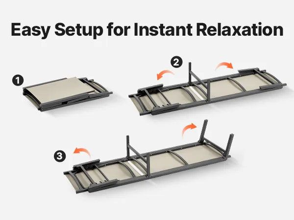 Effortless Assembly: No tools required! Set up this aluminum chaise lounge in just 3 easy steps and enjoy your new outdoor chair without any hassle. Quick, easy assembly means more time to relax.