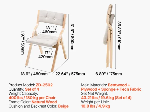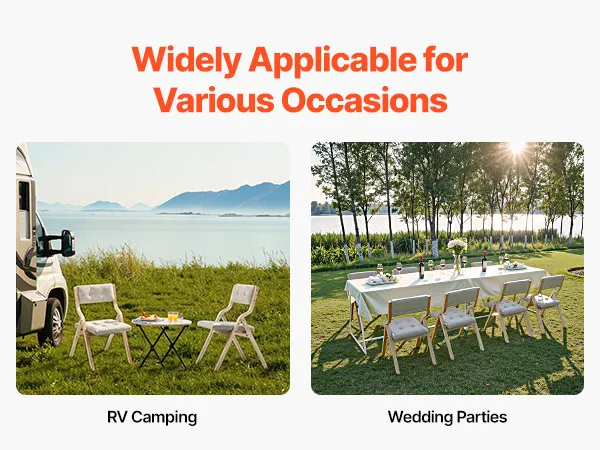 Our wooden foldable chairs support up to 400 lbs / 180 kg, equipped with large seat cushions for enhanced comfort. The easy folding design makes it convenient for storage and portability.