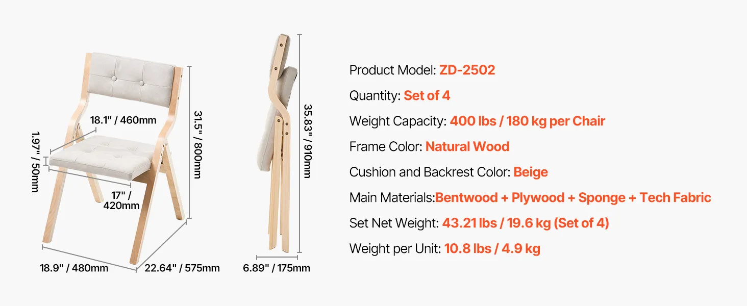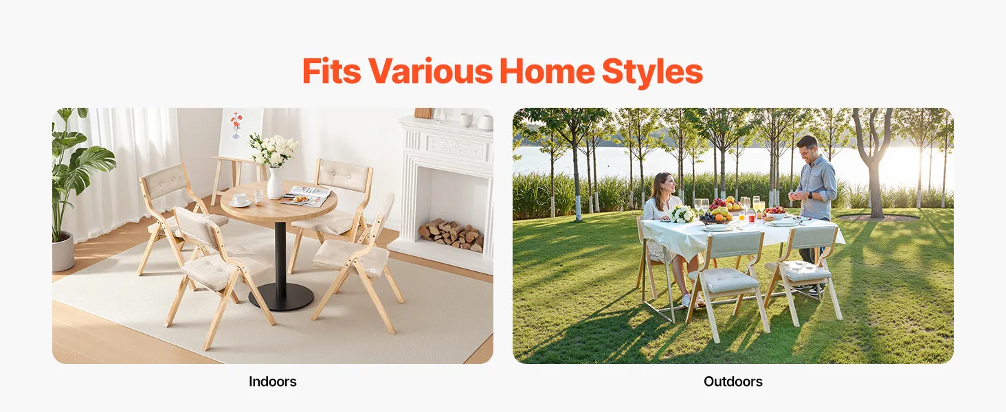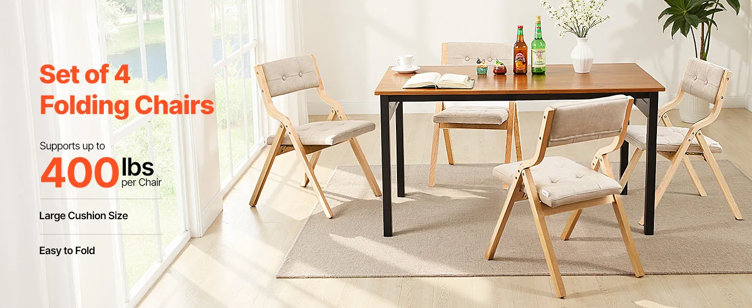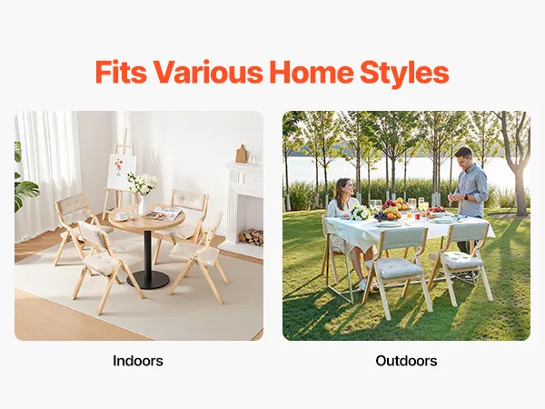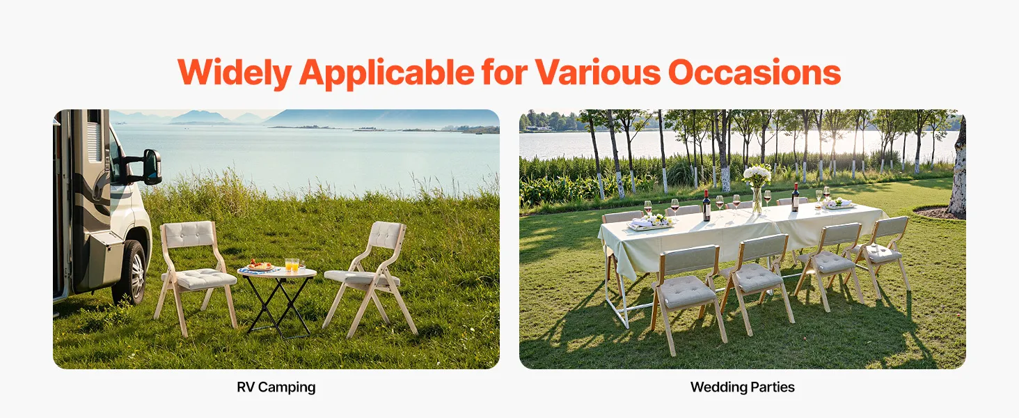 4-Piece Set: A modern wooden folding chair set that fits a variety of home or party styles. It can be used as a dining chair, small bistro chair, guest chair, office chair, camping chair, conference chair, or garden chair. It's the ideal seating solution for event planners