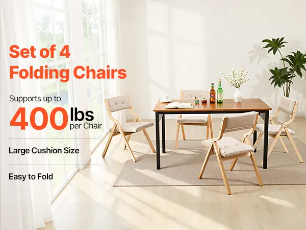 VEVOR Wooden Folding Chairs with Cushion, Set of 4, Portable Foldable Cushion Chair with Wooden Frame, Modern Padded Dining Chair for Kitchen, Office, Wedding, Party, Dining Room, Easy Assembly, Beige