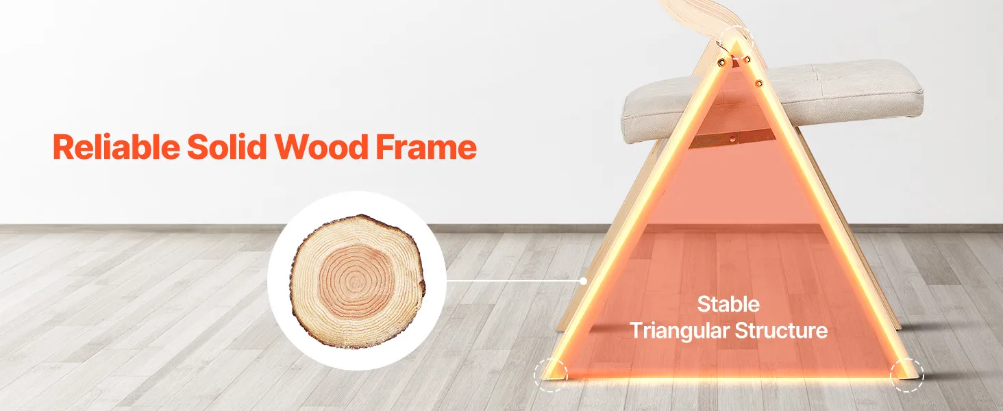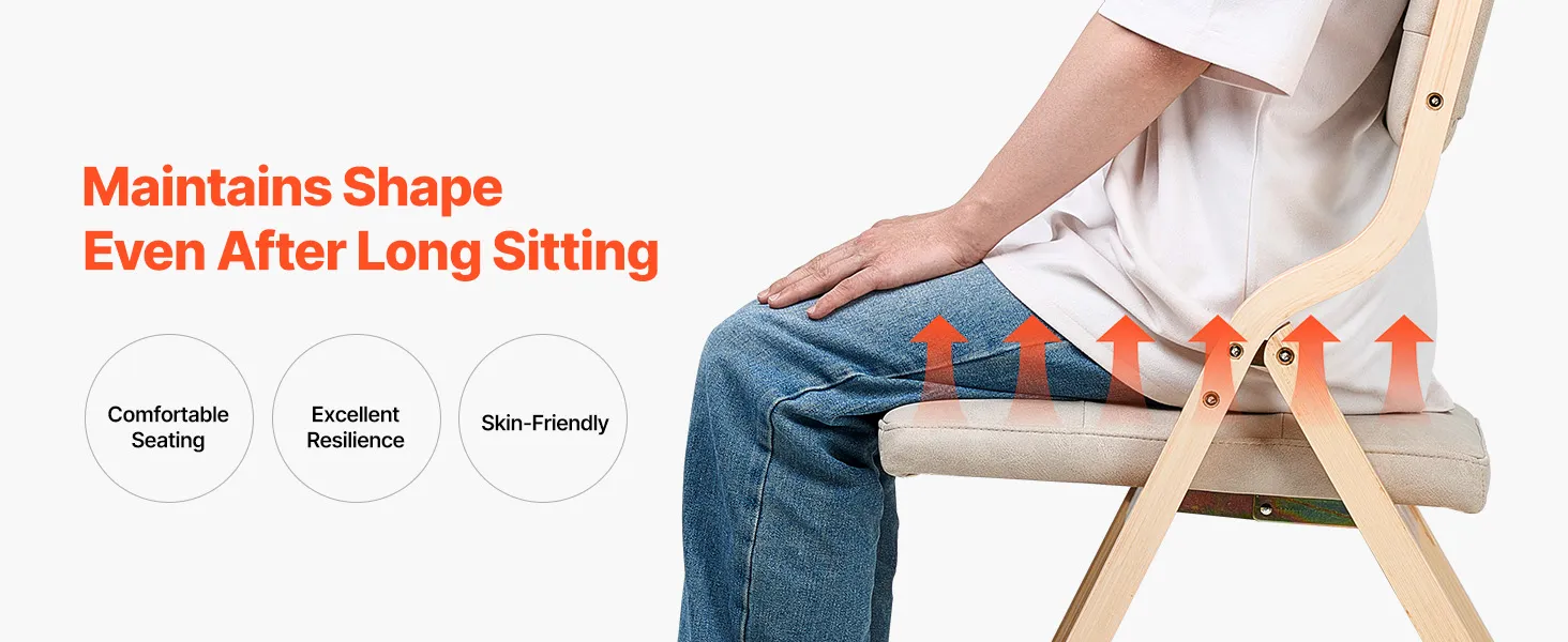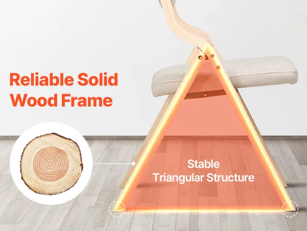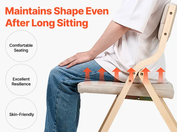 The folding cushion chair features a reliable solid wood frame with a sturdy triangular structure, providing strong weight-bearing capacity and long-lasting durability.