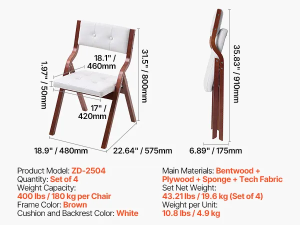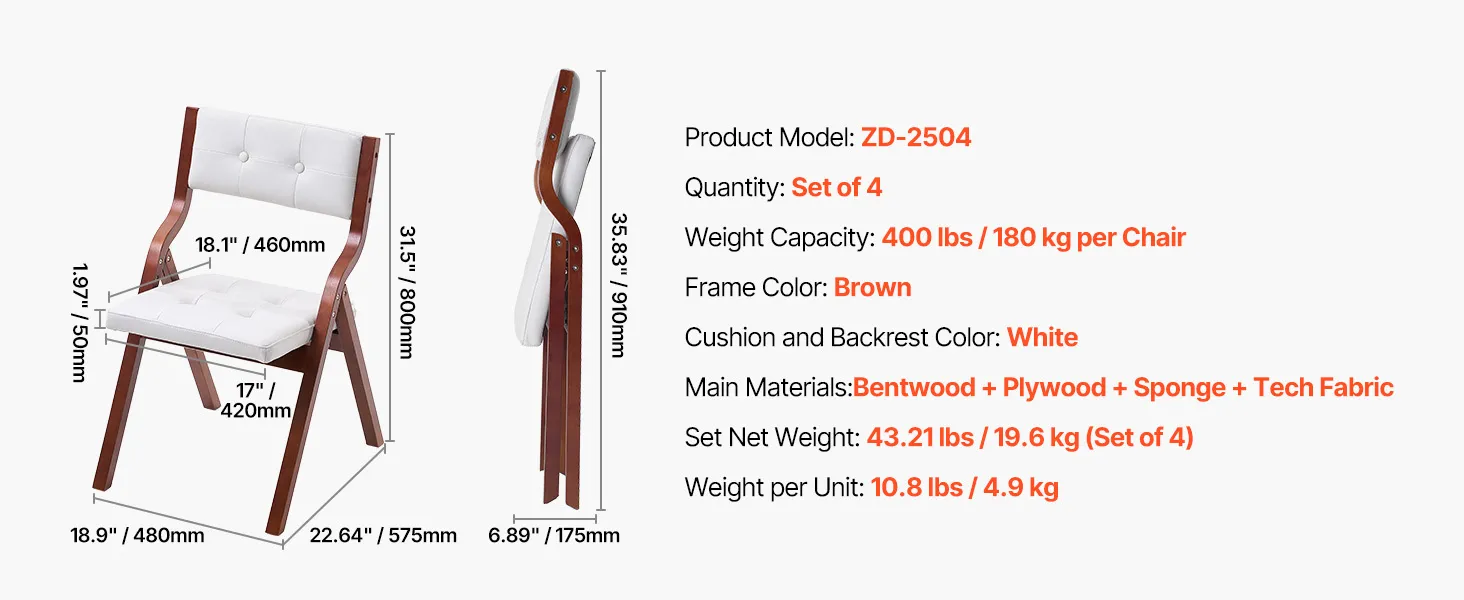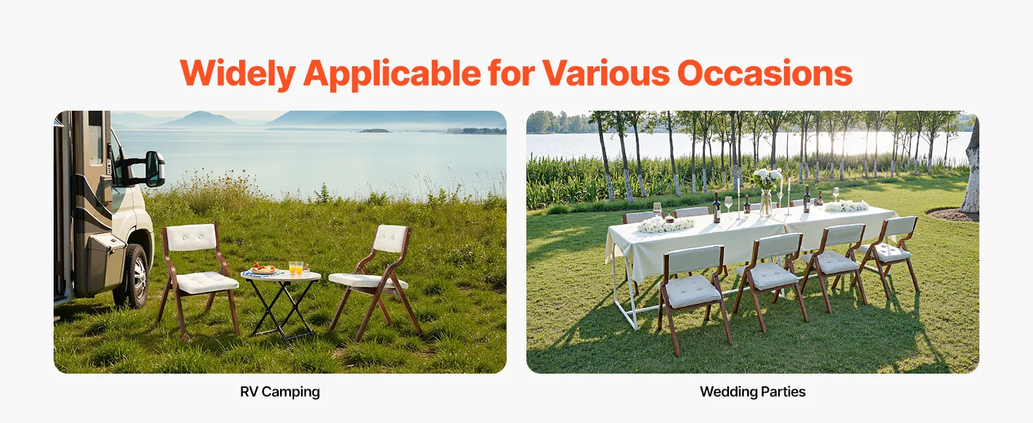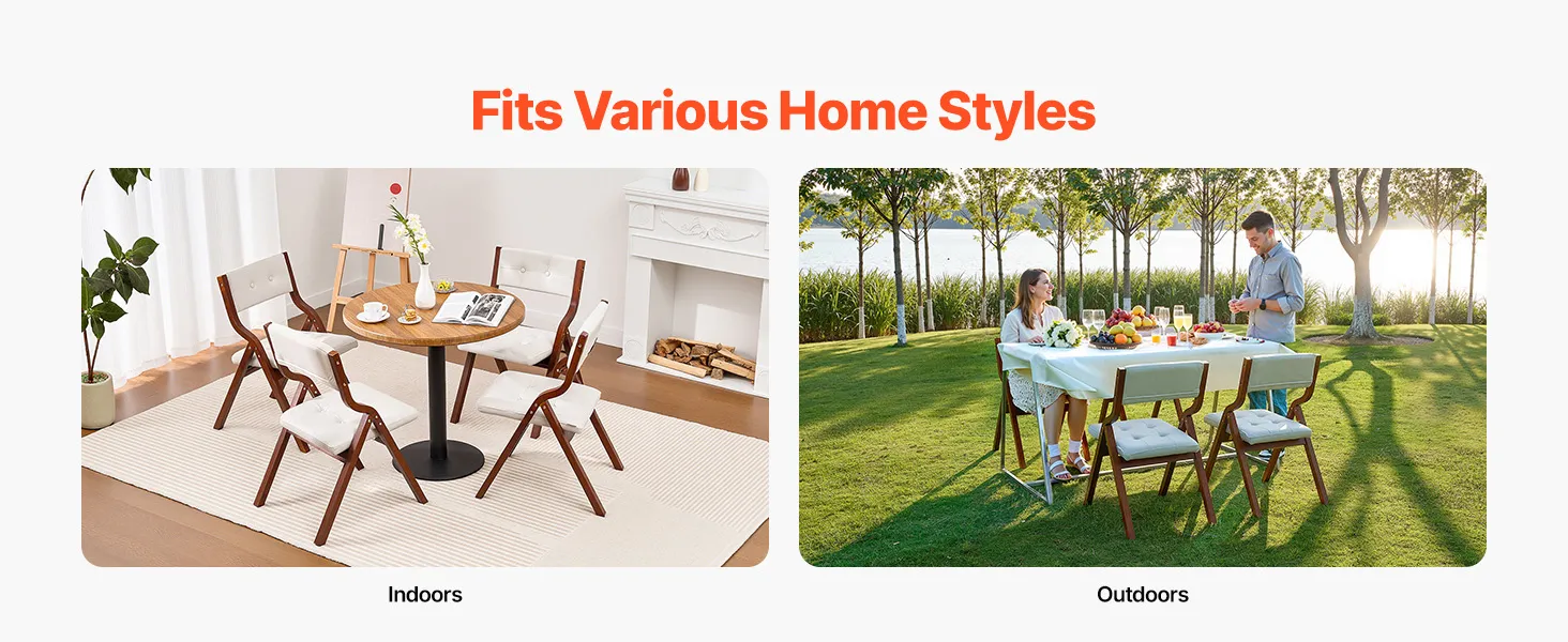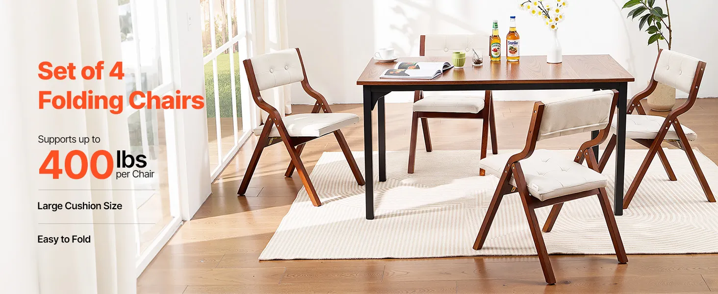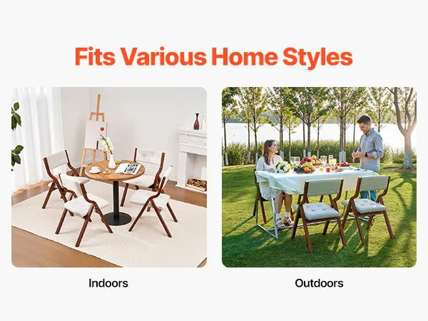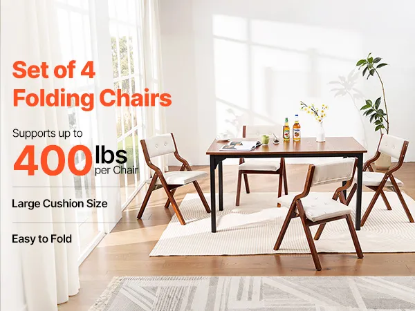 4-Piece Set: A modern wooden folding chair set that fits a variety of home or party styles. It can be used as a dining chair, small bistro chair, guest chair, office chair, camping chair, conference chair, or garden chair. It's the ideal seating solution for event planners