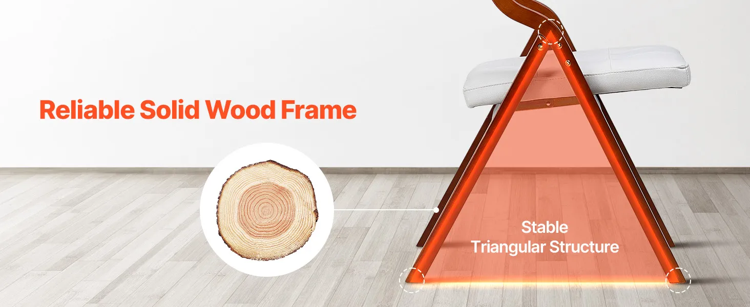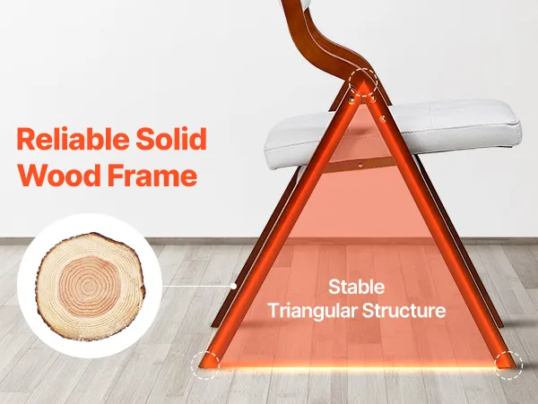 The folding cushion chair features a reliable solid wood frame with a sturdy triangular structure, providing strong weight-bearing capacity and long-lasting durability.