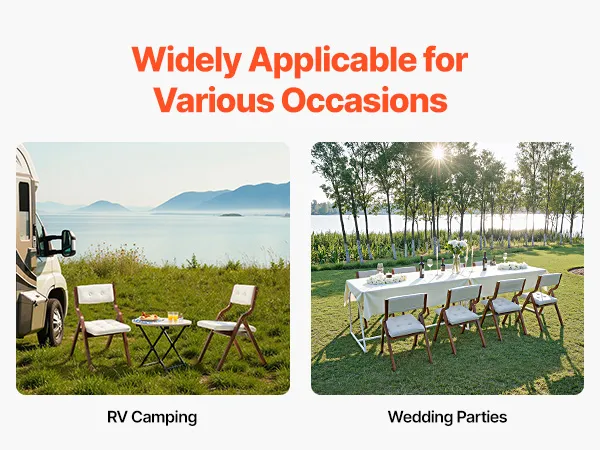 Our wooden foldable chairs support up to 400 lbs / 180 kg, equipped with large seat cushions for enhanced comfort. The easy folding design makes it convenient for storage and portability.