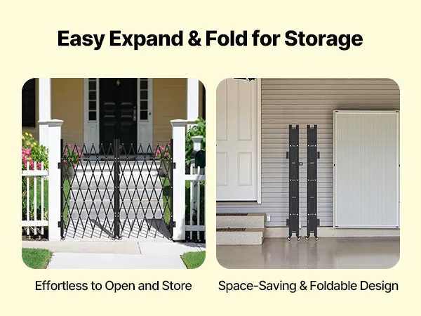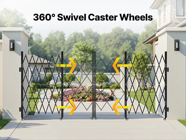 Flexible Rolling Casters: Our scissor gate has 360° swivel casters with locks at the bottom to fix positions. The side-folding door stays unobstructed when open or fully closed. Smooth-rolling enables easy transport and storage.