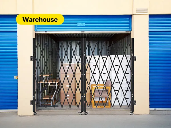 Wide Application: This folding security gate is widely used in homes and industrial sites to close/lock areas while maintaining visibility and airflow. It adds security for basements, garages, storefronts, etc.