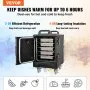 Insulation & Keep Fresh: The VEVOR insulated food carrier box does not require electricity and can keep food warm for 4-6 hours or chilled for 3-5 hours. It retains temperature and locks in freshness, eliminating worries about food cooling down or spoiling and messy storage.
