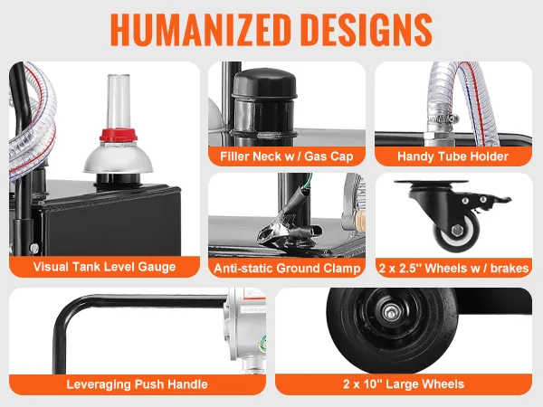 This feature is essential for maintaining a clean and safe environment where fuel is used frequently. We designed the VEVOR 30 gallon fuel caddy to store fuel without any leaks. It keeps your gasoline, diesel, or kerosene secure. This design reduces the risk of accidents, ensuring safety at all times. You can trust the caddy to keep fuel free from spilling or leaking. The leak-proof design makes it suitable for storing high volumes of fuel without worrying.