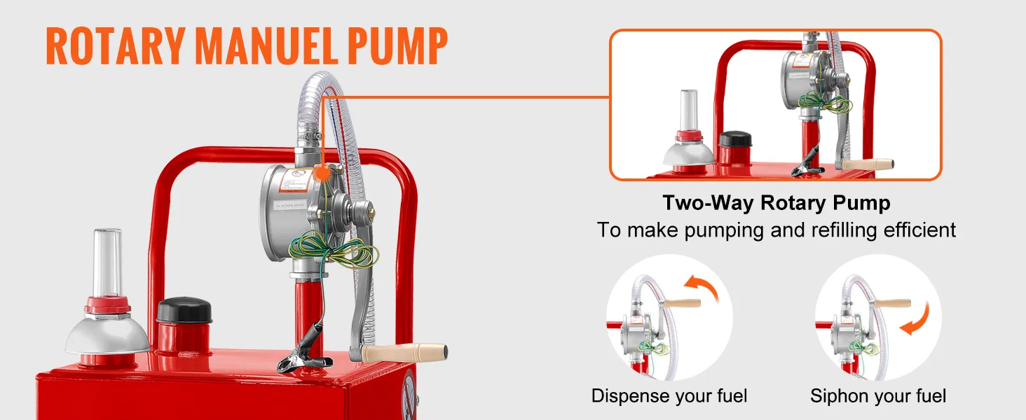 It is a must-have for any fueling task. The fuel caddy comes with a dependable manual transfer pump. This pump ensures smooth fuel dispensing. You can easily fill up your equipment without hassle. Additionally, the efficient and user-friendly two-way rotary pump offers both suction and dispensing functions, making it versatile for various fuel-handling tasks in the fuel management industry. The pump handle is simple to operate. With minimal effort required to operate, you can transfer fuel quickly and with minimum effort. The design of the pump ensures it operates without any leaks. It provides a reliable fuel transfer solution. Hence, this pump improves the overall efficiency of the fuel caddy. Yes, there is an advantage to simple transport and safe fuel transfer.
