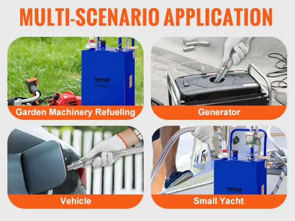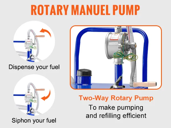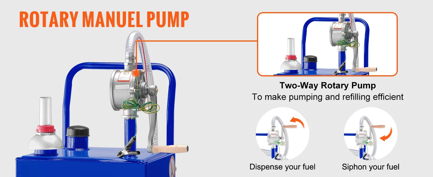 The two-way rotary pump reduces the risk of spills and makes refilling faster. The pump's efficiency simplifies fuel management, making it more convenient. Its versatility in handling multiple types of fuel adds to the overall utility of the fuel caddy.