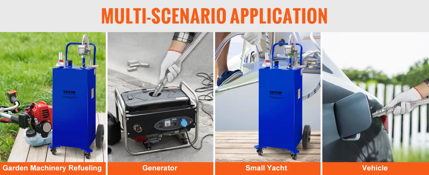 The caddy’s portability makes it ideal for multiple applications. It’ll be a practical solution for anyone who needs to refuel different equipment. The design ensures that it meets diverse fuel needs. This versatility makes this an excellent addition to any garage or workshop. You can use the fuel caddy for countless applications, including fuel container for cars, lawn mowers, ATVs, boats, etc. We have adapted our fuel caddy to easily meet all your fuel storage needs.