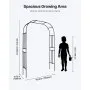 This garden arch enhances your yard's aesthetic and fits various gardening styles. Made with galvanized steel pipes, reinforced with tee connectors for wind resistance. Measuring 94.5 x 59 in, it's spacious and ideal for climbing plants, as well as wedding, holiday, and event decorations