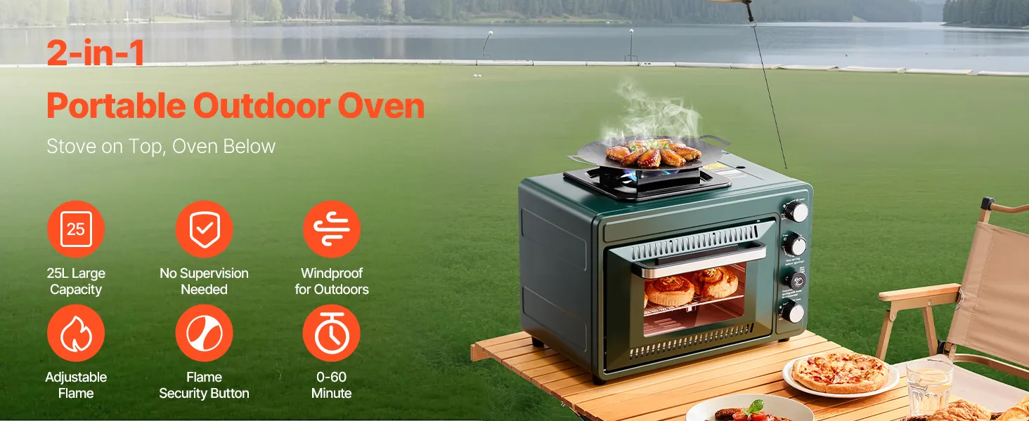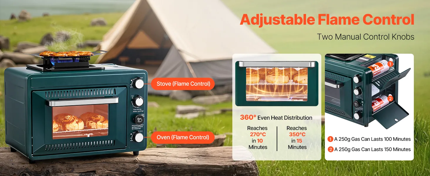 VEVOR Outdoor Oven, 2-in-1 Portable Gas Camping Stove Oven Combo, Adjustable Fire, 60-Minute Timer, Windproof, with Grill Shelf and Roasting Tray, for Camping Gear Backyard Picnic Outdoor Cooking VEVOR Outdoor Oven, 2-in-1 Portable Gas Camping Stove Oven Combo, Adjustable Fire, 60-Minute Timer, Windproof, with Grill Shelf and Roasting Tray, for Camping Gear Backyard Picnic Outdoor Cooking