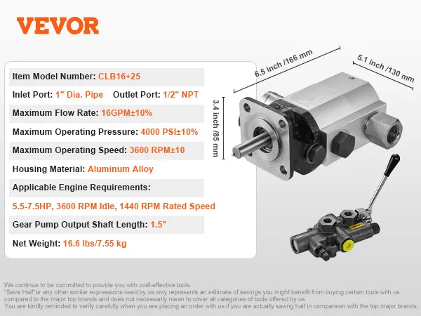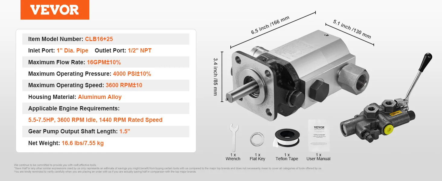 The VEVOR log splitter pump kit is incredibly versatile and perfect for many different uses. Our 2-stage hydraulic pump works great for log splitters, presses, machine tools, and snowplow hydraulic systems. It’s compatible with many well-known brands, such as Speeco, Huskee, Champion, and more. This means you can trust it to provide reliable power, no matter your equipment. Whether you need it for splitting logs or powering other tools, this wood splitter pump is ready to help you do the job.
