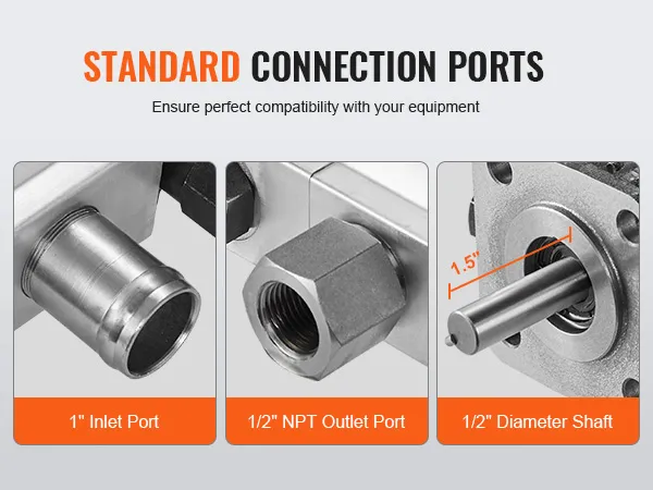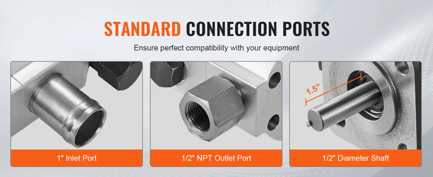 This log splitter pump kit is known for its excellent fit and intelligent design. It's made to work smoothly with many different hydraulic systems. With a two-stage setup, it has a 1-inch inlet and a 1/2-inch NPT outlet, so it connects easily to various pipes. The shaft is designed to be 1.5 inches long and 1/2 inch thick to run smoothly and save energy.