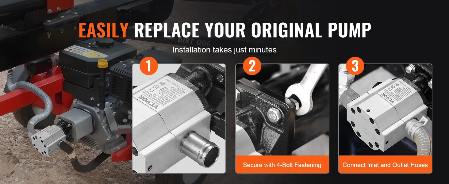 The simple installation process of the electric tools saves you time and effort. It also prevents additional costs from being incurred by hiring professionals. The VEVOR log splitter pump kit is designed to be very easy to install. You only need four bolts to attach it to the engine. This makes it simple enough for anyone to do without requiring special skills or complicated tools. This allows you to replace the old pump quickly and easily.