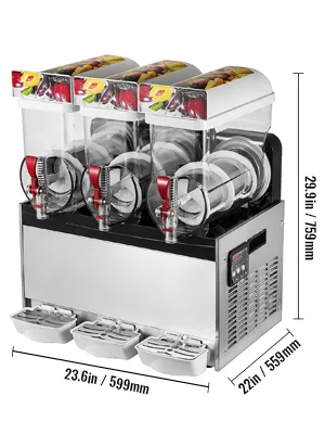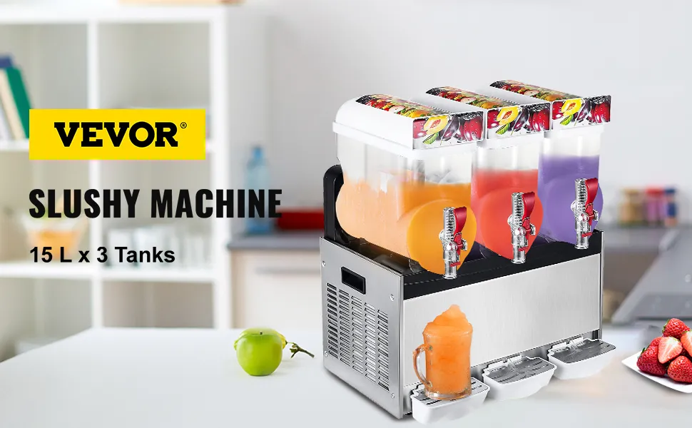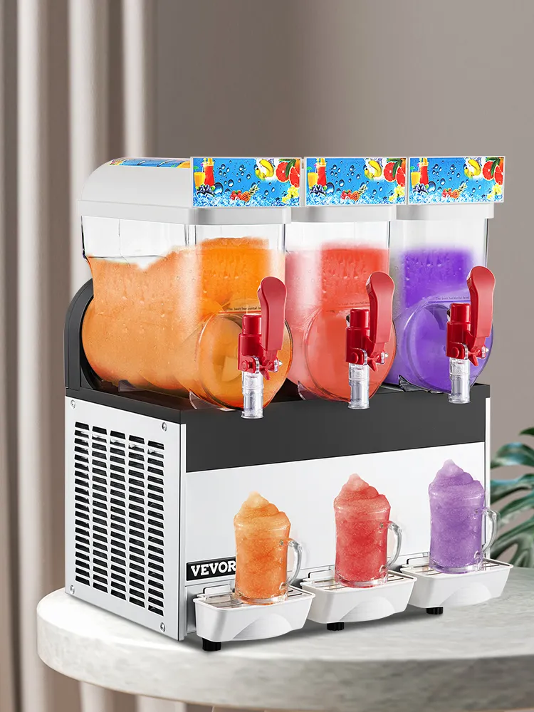 Here we offer you the superior slushie machine with high performance. 3*15L in capacity, convenient and simple to operate. It features a premium compressor with a full copper condenser, with rapid cooling, energy-saving, and low-noise. Due to the removable drip trays, it is easy for you to clean. Suitable for both commercial and home use.