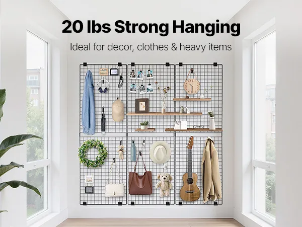 Sturdy Construction: Made from high-quality heavy-duty steel and thick wires, the grid panels are extra sturdy for max loading 20 lbs / 9 kg. The powder-coated finish makes them long-lasting use