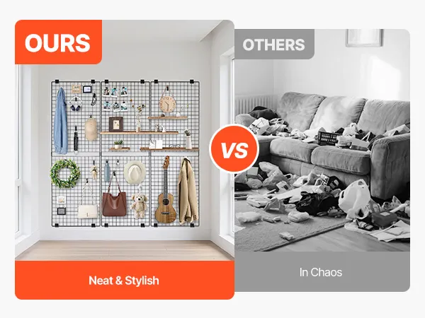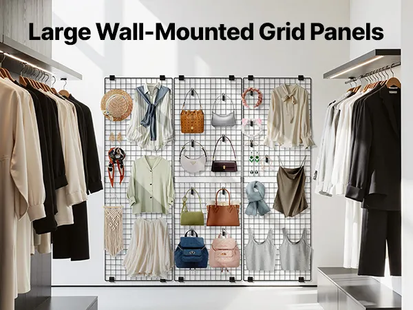 Wall-mounted Design: The black grid panels can be easily mounted on the wall, saving space and improving space utilization. Its minimalist design is stylish and modern