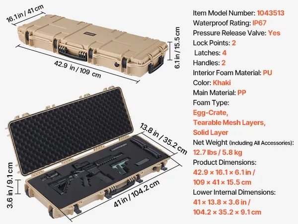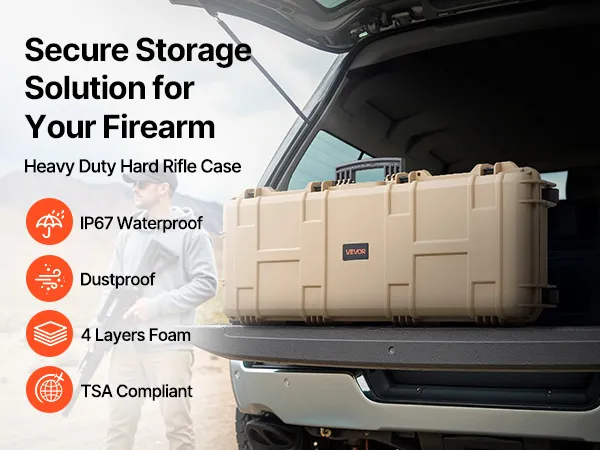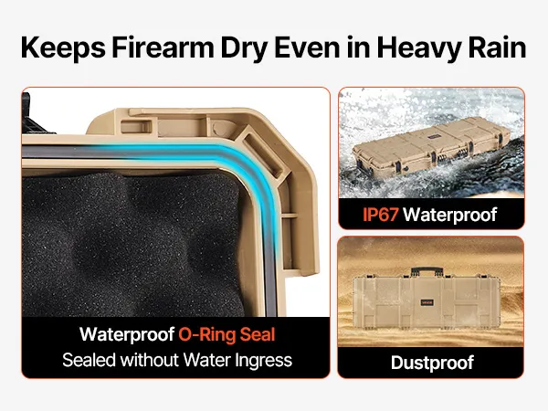 IP67 Waterproof & Dustproof: This hard rifle case features a rugged, impact-resistant exterior with IP67 waterproof and dustproof protection, ensuring a fully sealed design that keeps water out. It safeguards your firearms against harsh weather conditions
