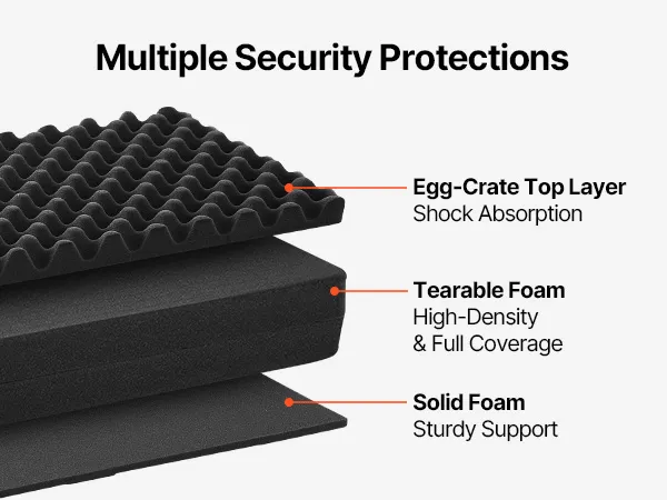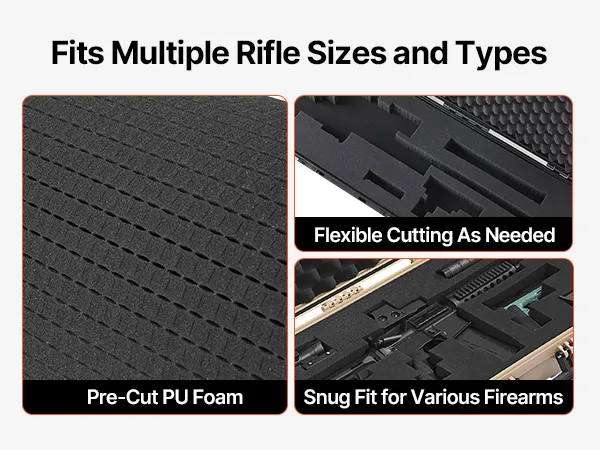 4-Layer Foam: Our gun case features 4 layers of soft foam:1 layer of egg-crate foam for shock absorption; 2 layers of pre-cut foam for a snug fit; 1 layer of solid foam for extra support. You can customize compartments tailored to the shapes of your rifle