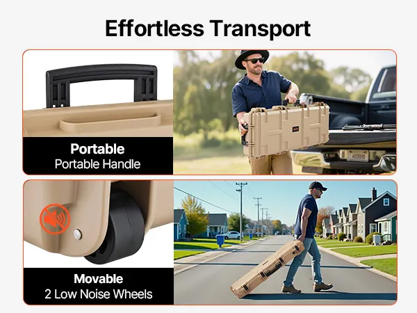 Portable & Easy to Move: Equipped with two silent wheels, this hard gun case can be effortlessly transported in public spaces, minimizing disruption. Multiple ergonomic handles make lifting and carrying simple, offering maximum flexibility and convenience