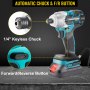 A 1/4-inch hex chuck features an automatic spindle lock that provides increased gripping strength and enables easy one-hand changing bits. The rotational switch lets you either rotate forward or reverse based on your purposes.