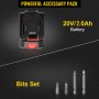 With one 20V/2.0Ah lithium-ion batteries & a fast charger, this compact drill can support a long-time use. Along with screwdriver bits, our product will make your work very convenient without restriction.