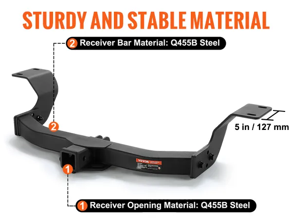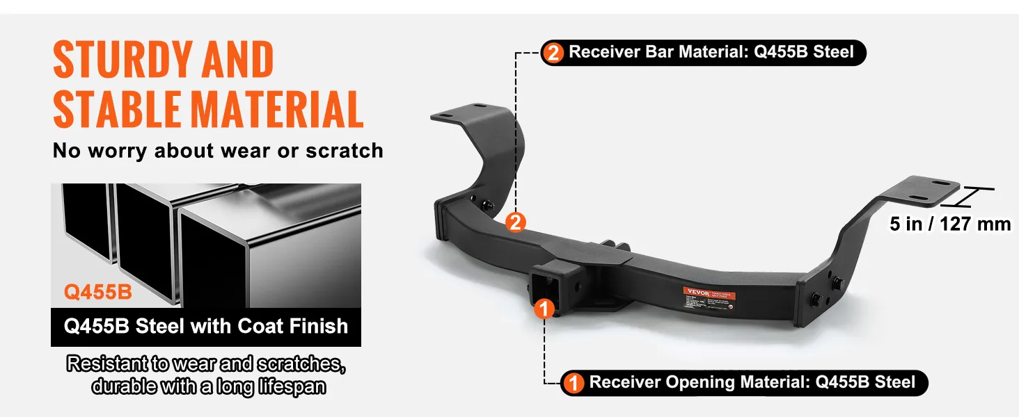 Crafted from sturdy Q455B steel, this trailer hitch receiver is not only strong but also wear-resistant, promising years of service.
