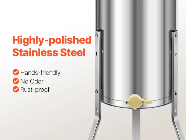 Premium Materials & Thoughtful Design: Made from food-grade stainless steel, this bee honey extractor is secure for contact with honey. The seamless barrel design enhances durability and prevents honey leakage.