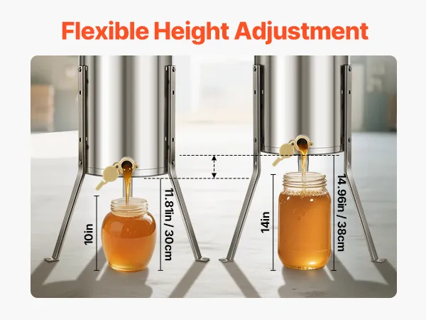 This 2 frame honey extractor features adjustable height, a sturdy stainless steel frame, for stable operation. With all necessary accessories, it's easy to use, suitable for deep, medium, and shallow frames, and offers smooth honey extraction with adjustable speed for optimal efficiency.