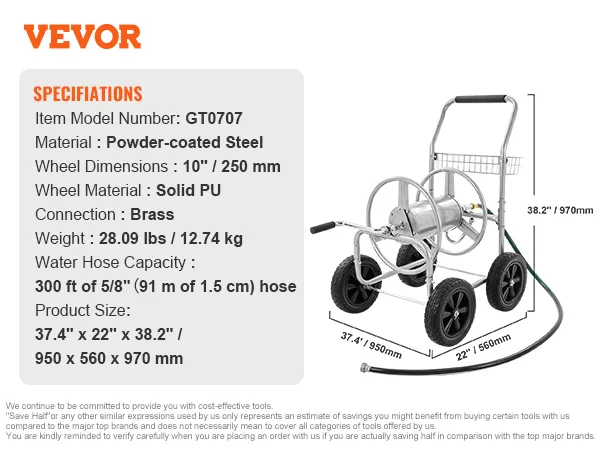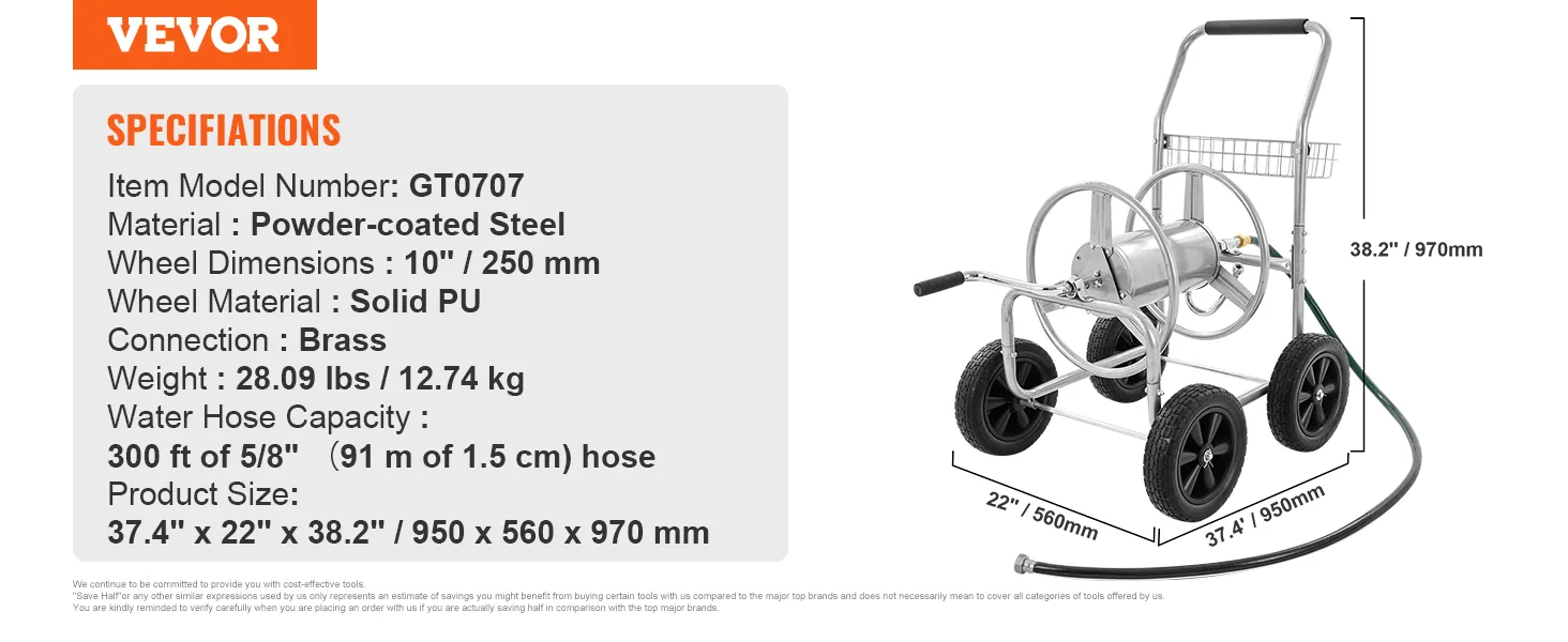The price is reasonable. The VEVOR heavy-duty hose reel offers excellent value compared to plastic alternatives. The durable steel construction ensures it lasts longer than plastic models. The price is competitive, making it an affordable option for those on a budget. Quality materials and solid build mean you get more for your money. Easy assembly and a sturdy design make it able to handle the tasks of gardeners in pretty practical and economical ways.