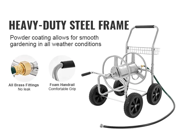It is a reliable and durable tool. The VEVOR garden water hose cart has slick powder-coated steel construction that ensures it is strong enough for heavy garden work. It can handle large amounts of hose without issue. The design of the cart ensures its stability even under pressure. Its design prevents leaks, maintaining steady water flow. A sturdy build means it can deal with rough handling without damage. This makes it ideal for those who need dependable hydration reels for intensive gardening.