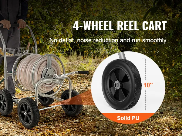 It's super easy to set up the VEVOR heavy-duty hose reel. It comes with clear instructions to guide you. You might need a wrench and screwdriver, but the process is user-friendly. The cart's design allows it to be moved easily. Its four wheels make it easy for transport across your lawn or garden. The crank handle is simple to use, making winding the hose quick and effortless. This feature is especially useful for those with large gardens who need to move their weed frequently.