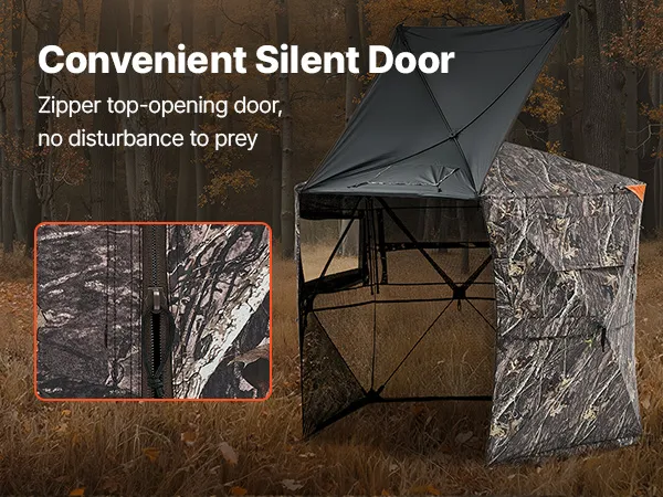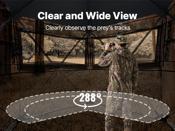 Silent Hunting Upgrade: The hunting blind uses a silent method with an internal sewn steel bar structure. The top-zipper door reduces noise for easy entry and exit. The windows and silent slide rails offers 288° visibility options easy tracking