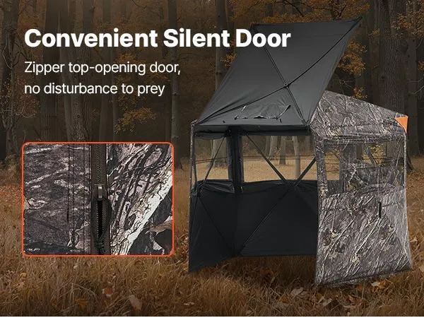 Silent Hunting Upgrade: The hunting blind uses a silent method with an internal sewn steel bar structure. The top-zipper door reduces noise. The windows and plastic silent slide rails offers wide visibility. The pentagon design provides easy tracking