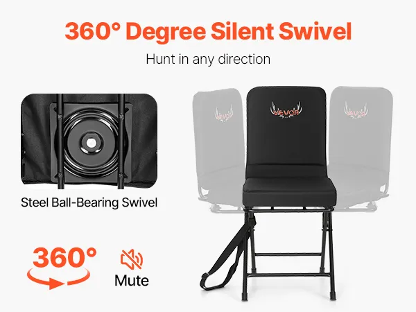 Designed with the serious hunter in mind, this premium hunting chair features 360° silent swivel mechanism, letting you pivot smoothly and silently. Just instantly get ready to lock onto and shoot your target from any direction! Ideal for deer hunting, camping, fishing or other outdoor activities.
