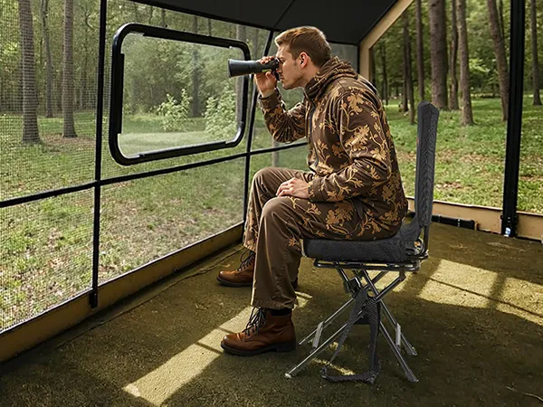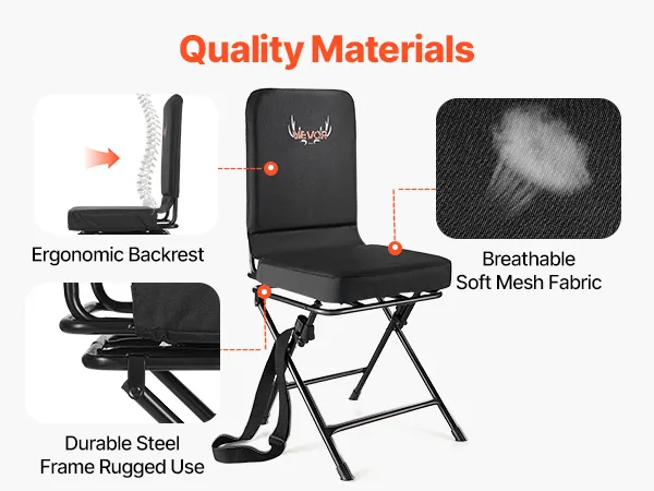 360° Silent Swivel Design: This hunting chair features an upgraded silent base that reduces noise and wobble. It smoothly rotates in any direction, allowing you to turn quickly and quietly when game enters range, ensuring a cozy hunting experience