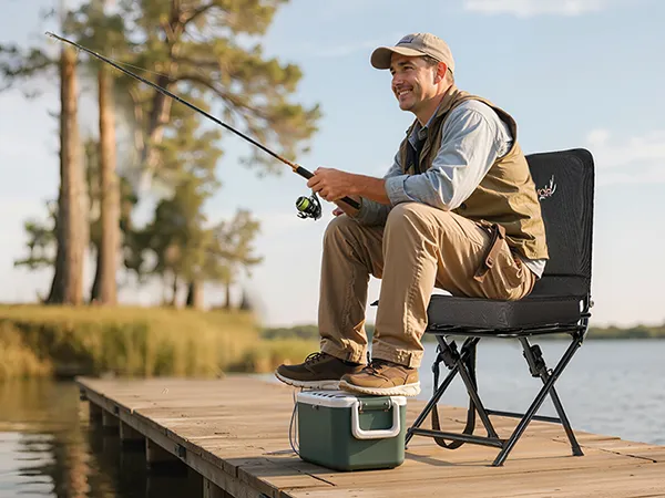 Q:How much weight can this chair support? Is it suitable for fishing or camping? A: This hunting chair features a reinforced steel tube frame with a maximum tested weight capacity of 300 lbs. It's designed for demanding outdoor use like camping, fishing, and hunting. The sturdy frame and non-slip feet ensure stability even on uneven ground.